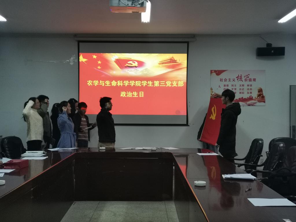 农学与生命科学学院学生第三党支部于20191213日在农学楼1601会议室召开预备党员转正大会暨2019年度组织生活会会前集体学习,并为1112月份加入党组织的党员举行政治生日仪式。