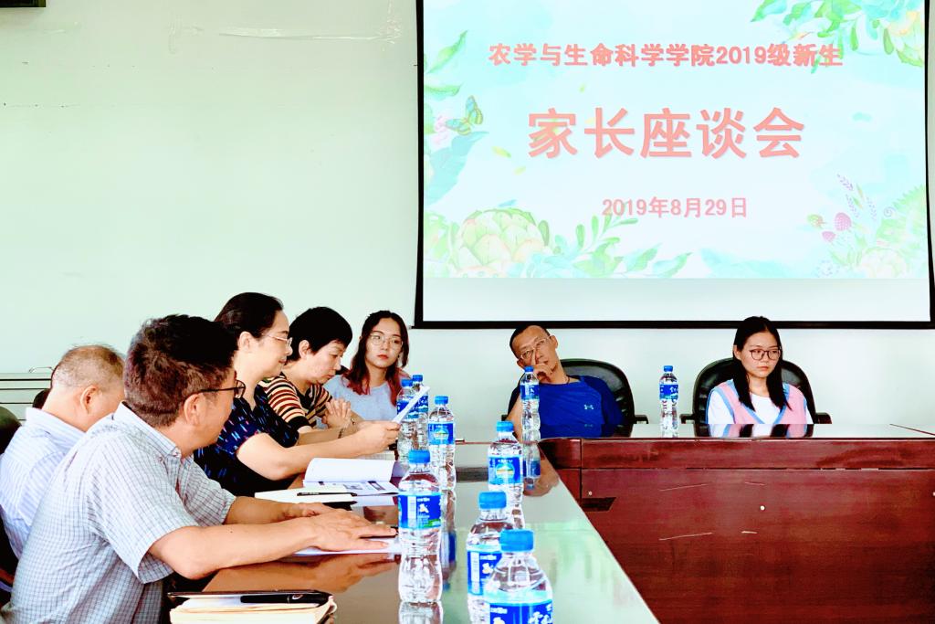 2019829日下午,为及时让新生及家长进一步了解我院办学条件办学水平及特色,体现我院“家长满意、学生满意”的服务意识,农学与生命科学学院在农学楼1601会议室举行了2019级新生家长座谈会。院长王定康、党委书记翟书华、党委副书记杨丽华等学院党政领导、辅导员、新生及家长代表近40入参加了座谈。
