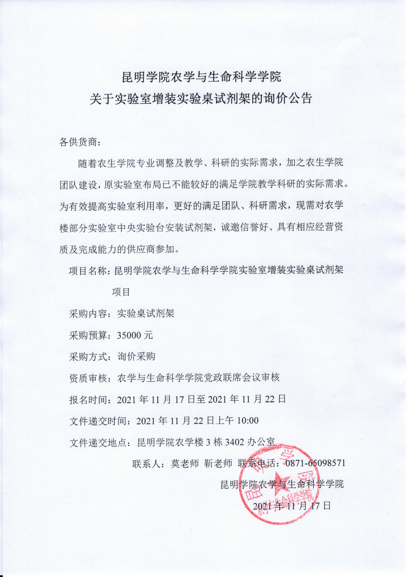 beat365中国官方网站关于实验室增装实验桌试剂架的询价公告