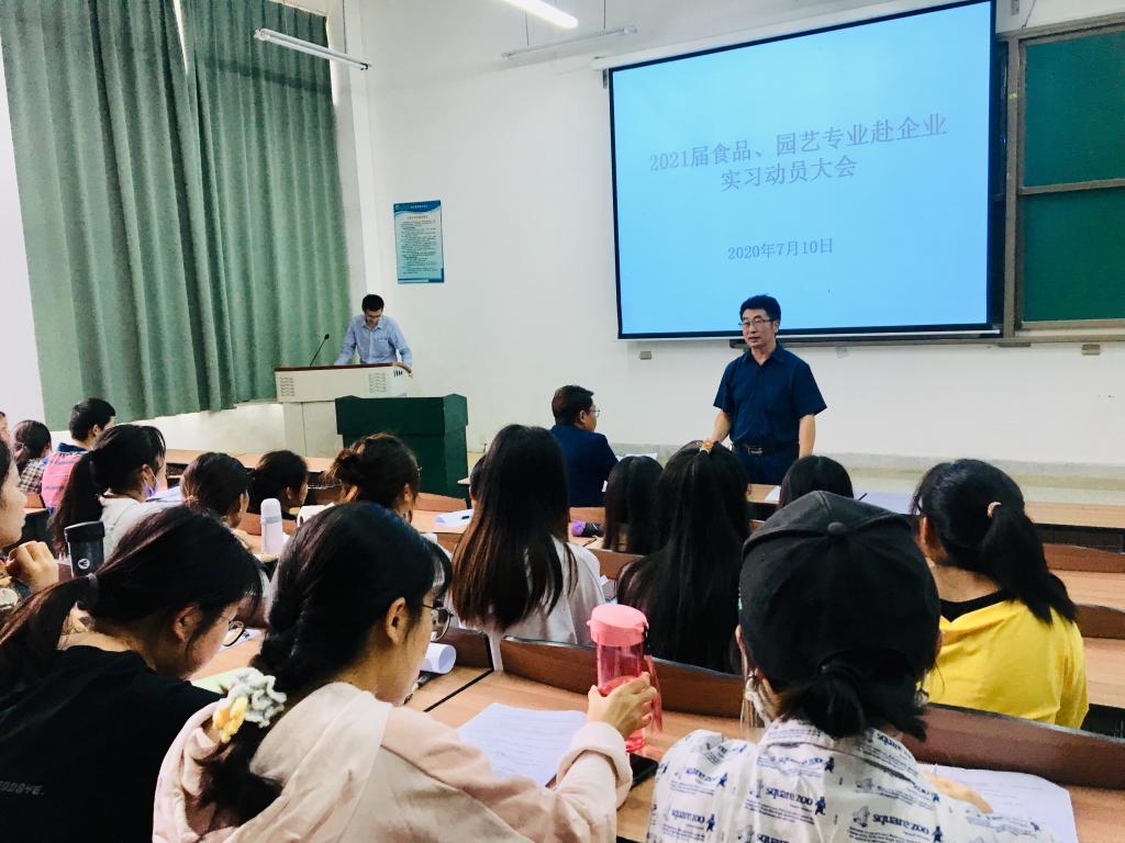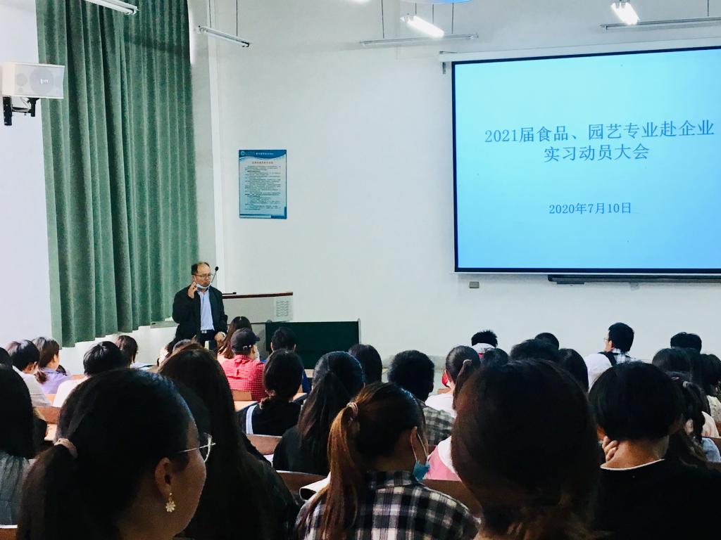 7月10日下午,beat365中国官方网站在博雅楼3104教室召开2021届食品、园艺两个专业毕业生实习动员会。学院党政领导、企业人力资源部负责人、班主任、指导教师和217名学生参加了此次动员会。