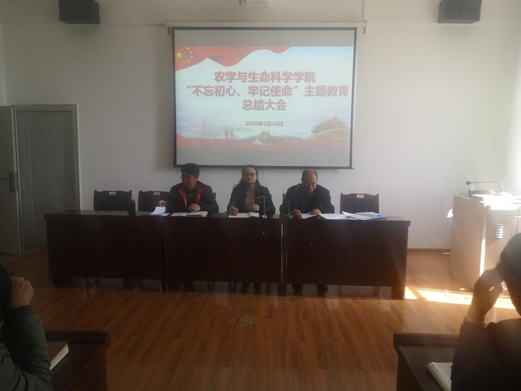 2020年1月16日下午,农学与生命科学学院在农学楼1507召开“不忘初心、牢记使命”主题教育总结大会,学校党委第三指导组李杉同志莅临监督指导,学院全体班子成员、党员、教师等同志参加会议,学院党委副书记、院长王定康同志主持会议。