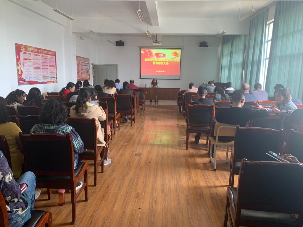 为深入学习贯彻习近平总书记在党史学习教育动员大会上的重要讲话精神,认真贯彻落实党中央决策部署。4月2日,农学与生命科学学院在农学楼1507召开党史学习教育动员大会。学院党委书记罗隽雁主持会议,并对学院党史学习教育进行动员部署,全院师生党员参加会议。