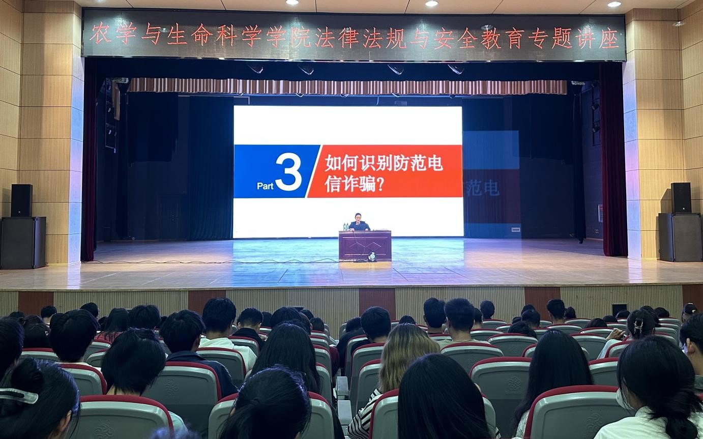 2023年4月14日,在第八个全民国家安全教育日来临之际,为贯彻总体国家安全观,增强全民国家安全意识和素养,夯实以新安全格局,保障新发展格局的社会基础,农学与生命科学学院邀请了云南省优秀共产党员,云南祥宇律师事务所执业律师杨雁翎在昆明学院学生会堂为农学与生命科学学院同学们开展法律法规与安全教育专题讲座。