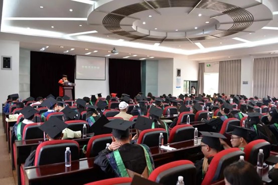 典礼开始,伴随着毕业生大学四年的点滴回顾视频,学院领导和毕业生陆续入座。两点整,在主持人的主持下毕业典礼正式开始。首先由学院党委书记刘开庆老师向毕业生寄语毕业生,无论身处何时何地,都要秉承“明德至善,知行利物”的校训精神,争做有理想、敢担当、能吃苦、肯奋斗的新时代好青年。愿毕业生在每一次的航行中都能一帆风顺,面对挑战与困难,都能以坚韧不拔的毅力去克服。前程似锦,未来的道路将因努力和坚持而更加绚烂。愿毕业生在新的征途中,绽放出更加耀眼的光芒,书写属于自己的辉煌篇章!随后,由学院党政领导为毕业生代表颁发毕业证书。之后,由夏体渊院长为毕业生代表拨穗、授予学位证书并合影留念,它不仅是对毕业生的祝贺,也是对他们未来道路的鼓励和祝福。